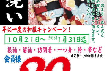 七五三・結婚式・お正月・成人式など、秋冬は着物を着る機会が増える季節です。 大切なお着物を、きちんとお手入 …続きを読む