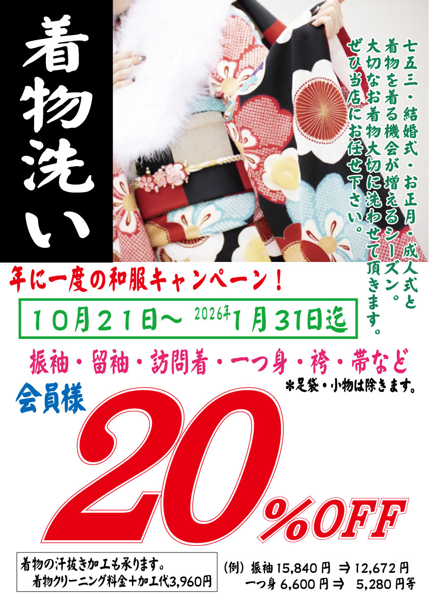 2025.10.17年に一度の「着物洗いキャンペーン」開催👘(2025.10.21~2026.1.31)