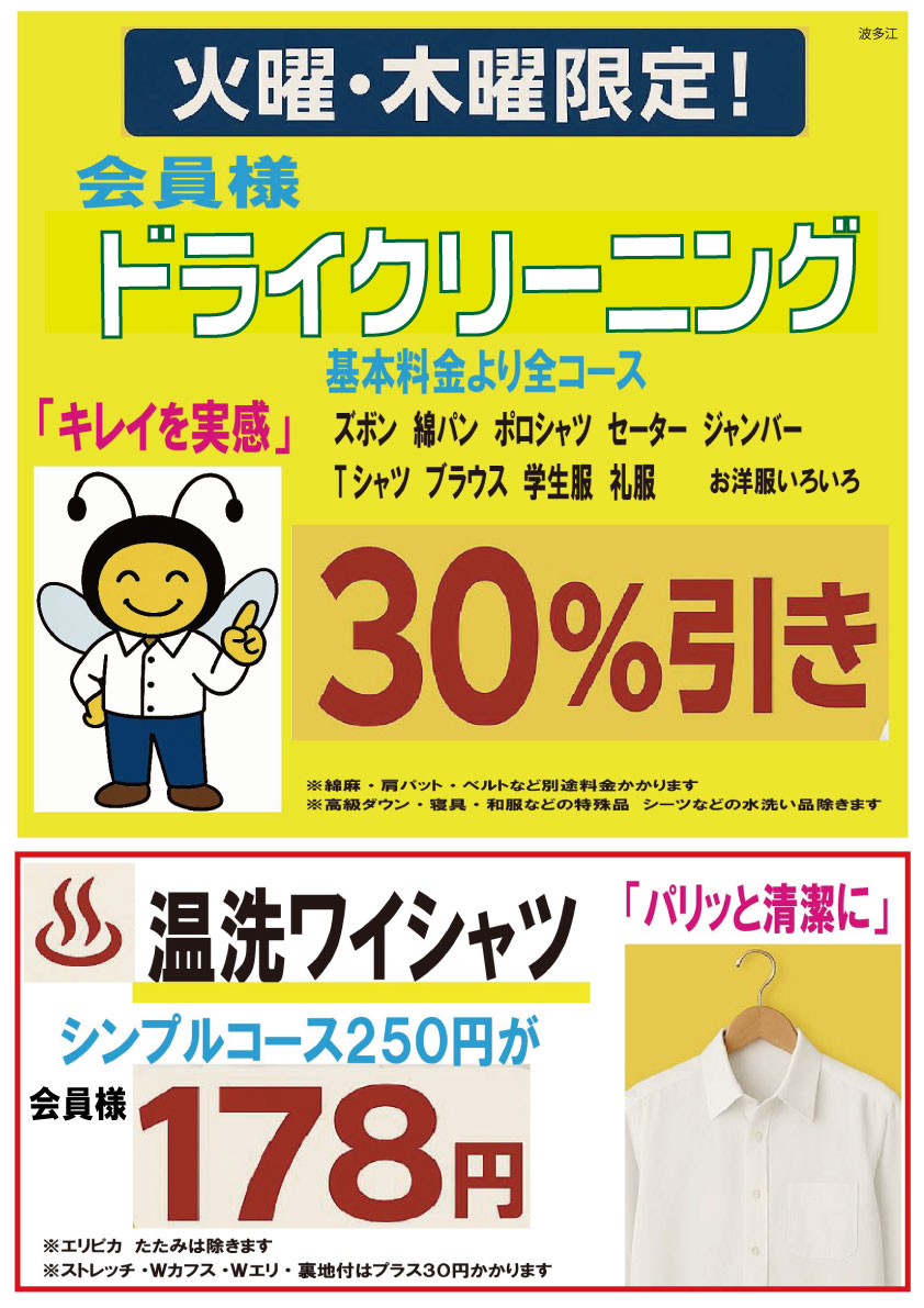🌼火曜・木曜限定「ドライクリーニング30%引き」