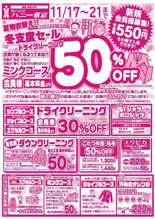 衣替えにぴったりの ドライクリーニング特別セール を開催します。